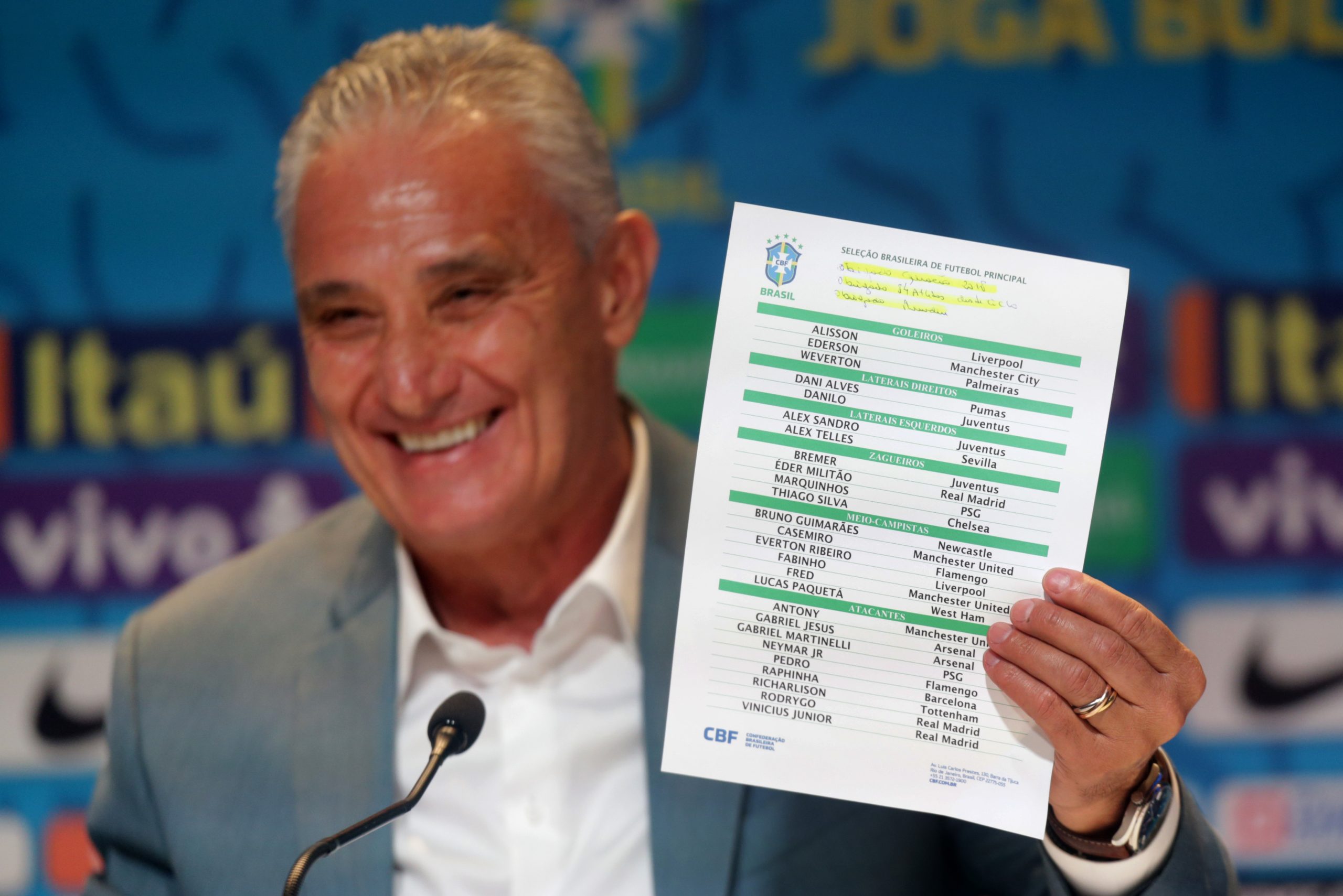 O técnico Tite convocou nesta segunda-feira a lista de 26 convocados para a Copa do Mundo. Sem maiores surpresas, o treinador chamou o lateral Daniel Alves, o zagueiro Bremer e os atacantes Pedro e Gabriel Martinelli, que eram as principais dúvidas para o Mundial do Catar. Por outro lado, ele deixou fora o meia Philippe Coutinho, machucado, e o atacante Roberto Firmino.