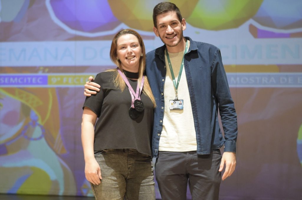 A professora Ana Paula Hoffmann, que atua na PEI Celso Piva como docente em matemática, também foi premiada no evento, na categoria Bicentenário da Independência: 200 Anos de Ciência, Educação, Tecnologia e Inovação no Brasil, com o projeto “Ensino de Sólidos Geométricos por Meio de Lapbooks”. Ela explica que o projeto foi baseado em uma experiência de sala de aula, quando utilizou a ferramenta LapBook para ensinar aos seus alunos a aplicabilidade do calculo de área e volume de sólidos geométricos.