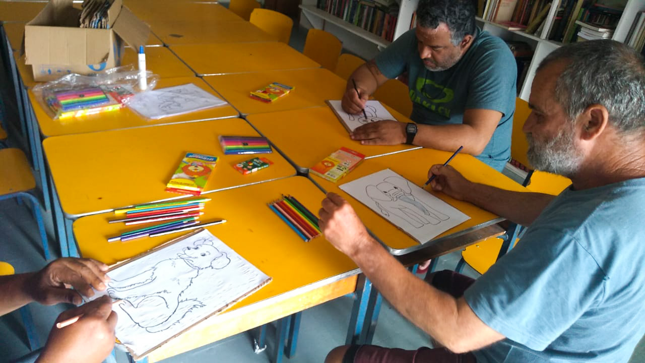 Três homens assistidos pelo Serviço de Acolhimento Institucional Masculino Centro iniciaram nesta quinta-feira (1º) a confecção de um quebra-cabeças com figuras de animais. A atividade é direcionada aos acolhidos com deficiência intelectual de modo a contribuir para a melhoria da autoestima, a redução de fatores estressores, a minimização da ansiedade e da angústia, que são presentes no cotidiano dos acolhidos.