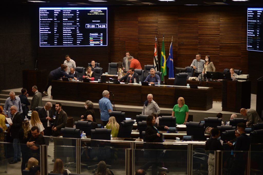 A Câmara de Guarulhos aprovou 14 projetos de lei de autoria da Prefeitura que estavam na pauta da sessão extraordinária desta quarta-feira (21), última do ano. Após o encerramento, os vereadores entraram em recesso e retomarão aos trabalhos legislativos em fevereiro de 2023. Vale destacar a aprovação dos projetos de regularização de feiras livres (1901/2022) e de cemitérios (PL 2068/2019), que estavam há bastante tempo em discussão.
