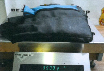 Policiais federais, da equipe do K9, ao fiscalizarem os passageiros que realizavam os procedimentos migratórios, perceberam a indicação do cão farejador ao passarem por uma passageira. A mulher, nacional da Namíbia, foi selecionada, teve sua bagagem revistada e passou por busca pessoal, realizada por uma agente de proteção da aviação civil. Sob suas vestes foi encontrada uma cinta abdominal com volumes costurados ao forro contendo um pó branco que, realizados os exames periciais, foi identificado como cocaína.