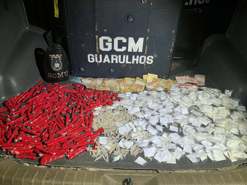 A Guarda Civil Municipal (GCM) de Guarulhos prendeu um homem com 1.121 porções de drogas na noite de sábado (13) na praça Orobó, Jardim São João. A equipe efetuava patrulhamento preventivo na região quando percebeu o acusado, que tentou fugir e dispensar uma sacola com as substâncias em embalagens prontas para comercialização, além de 1.200 reais.