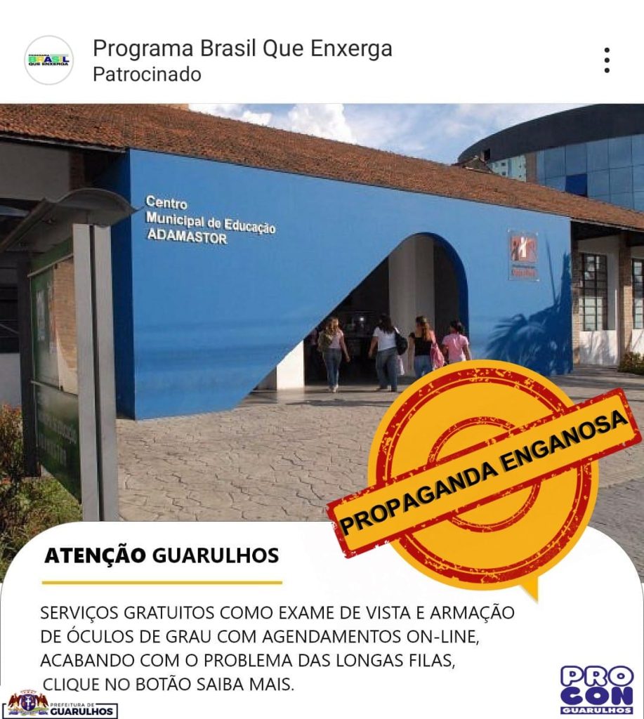 O Procon Guarulhos proibiu diversas óticas e clínicas de optometria de usarem em seus anúncios divulgados nas redes sociais Facebook e Instagram imagens de equipamentos públicos municipais (Centro Educacional Adamastor, UBS, hospitais e ônibus). Essas propagandas, que informam sobre supostos programas sociais que seriam vinculados à Prefeitura de Guarulhos, caracterizam propaganda enganosa e estão em desacordo com o Código de Proteção e Defesa do Consumidor (CDC).