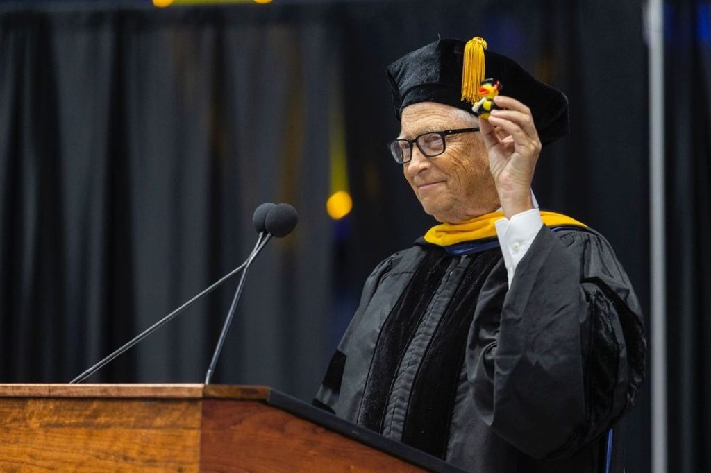 Gates não tem um diploma universitário. Ele contou, no discurso, que deixou a universidade após três semestres para fundar a Microsoft. “Então, o que um universitário desistente sabe sobre formatura? Na verdade, não muito pessoalmente”, disse ele.