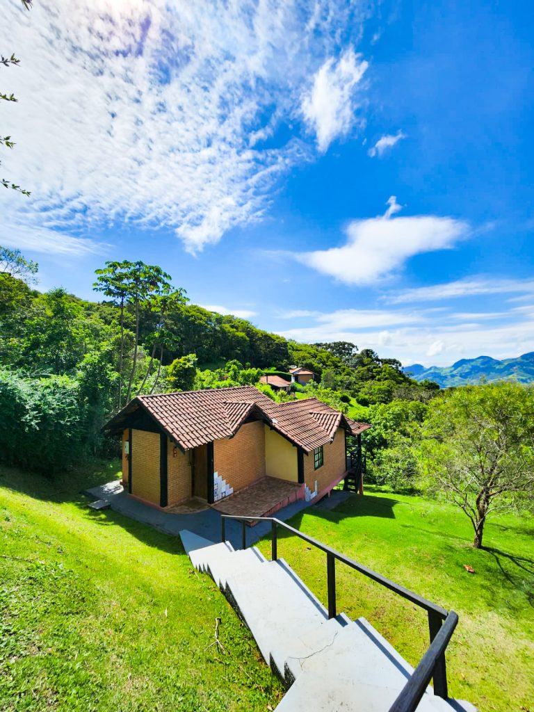 Situada a 1.400m de altitude, possui espaçosos chalés com cozinha completa equipada com geladeira, fogão, armário com utensílios domésticos (copos, taças, talheres, pratos), mesa para refeição, TV, lareira e uma sacada de madeira, que além da vista deslumbrante das montanhas, possui uma convidativa rede de descanso.
