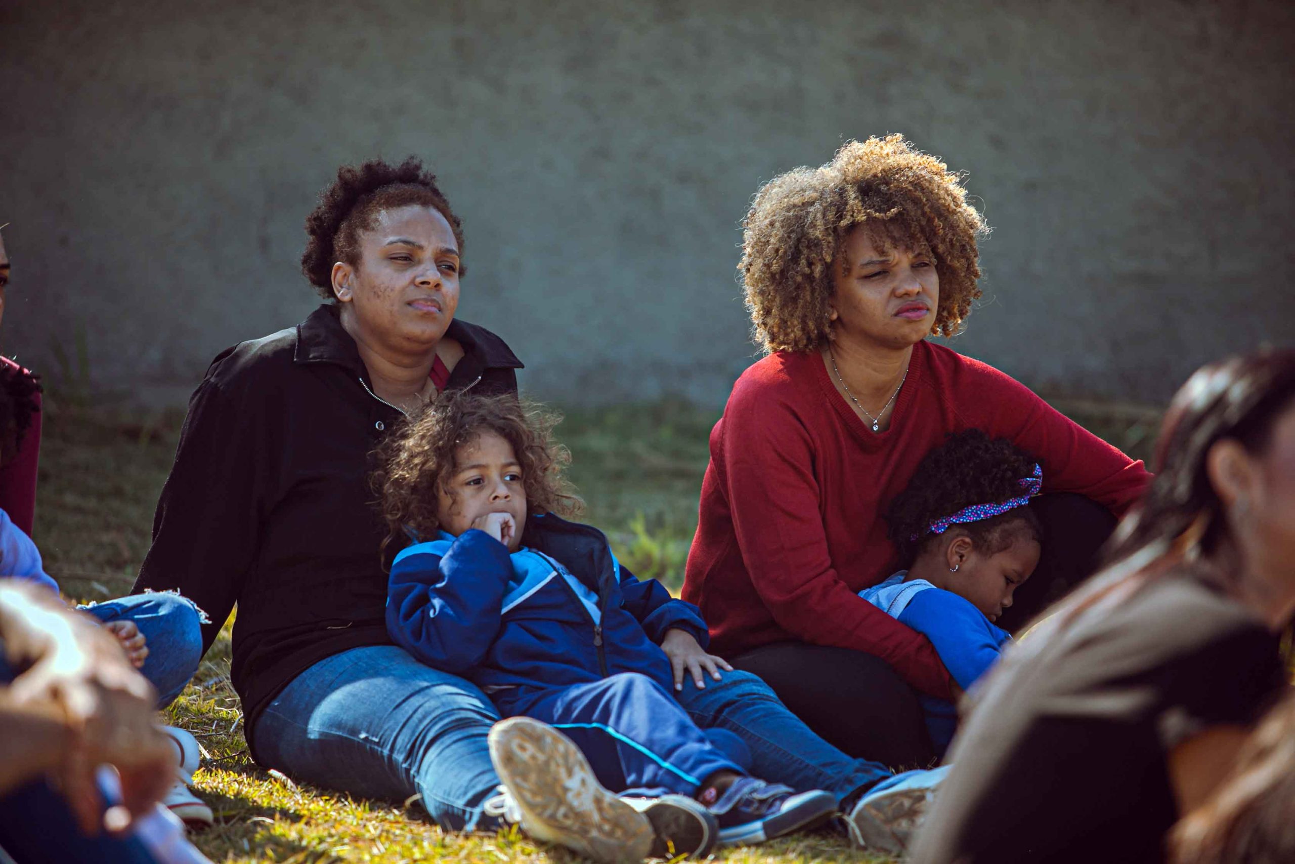 Cada professor levou sua turma para o parque da escola e, junto aos pais, sentaram-se no gramado para uma roda de conversa e a elaboração de uma carta de intenções da escola ideal, documento que direcionará as ações pedagógicas e todas as organizações dos tempos e espaços escolares.