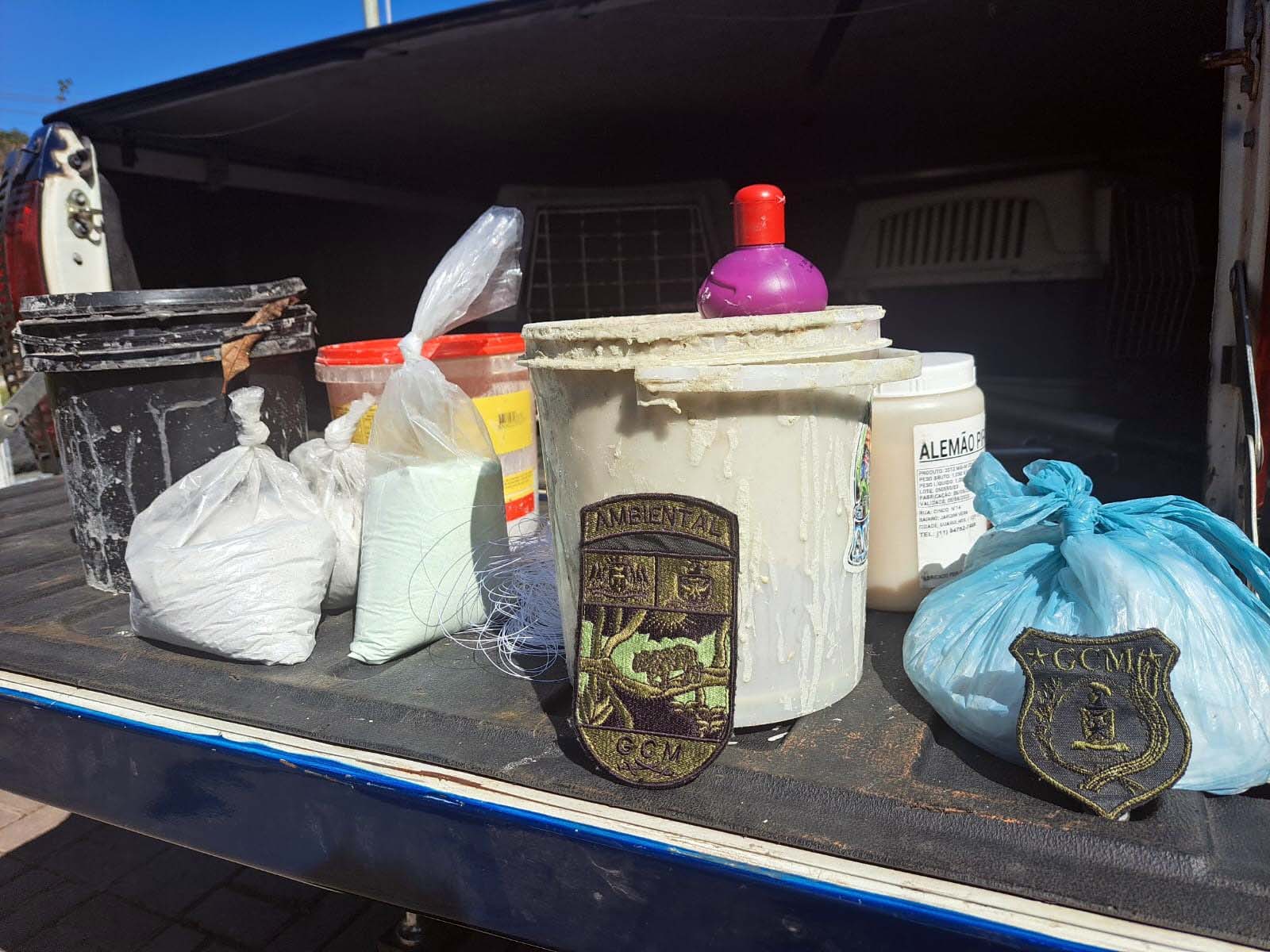 A Guarda Civil Municipal (GCM) de Guarulhos fez uma operação no sábado (22) de conscientização e combate ao uso ilegal de linhas cortantes no Parque Transguarulhense. A ação, coordenada para impedir que um campeonato de pipas não autorizado ocorresse, apreendeu vários baldes contendo cerol, composto de vidro moído e cola, e linhas chilenas, um material produzido com pó de quartzo e óxido de alumínio, que foram abandonados pelos pipeiros.