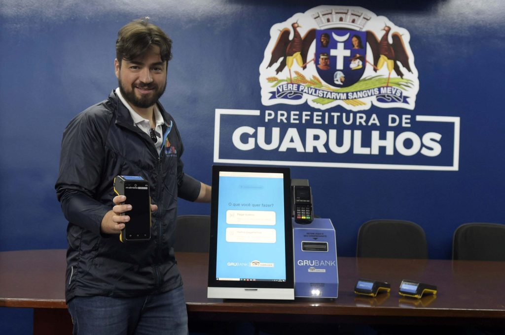 A Prefeitura de Guarulhos assinou nesta segunda-feira (24) o convênio do GRU Bank, o primeiro banco digital de um município do Brasil. A iniciativa permitirá ao cidadão parcelar tributos municipais, federais e estaduais e outras contas em até 12 mensalidades com juros de até 3,5% ao mês, taxa inferior à praticada pelas principais instituições bancárias, que pode chegar a 10% no cartão de crédito e a 16% no cheque especial.