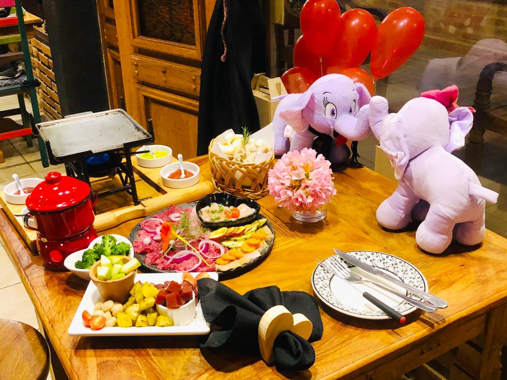 Já o Fondue de Carne, idealizado pela proprietária Renata Soares Martins, vem com filé mignon, truta, linguiças, frango, camarão, quatro tipos de molhos e legumes. A sobremesa é fondue de chocolate com frutas, waffles marshmallow, jujuba e suspiro, finalizando com dois cafés.