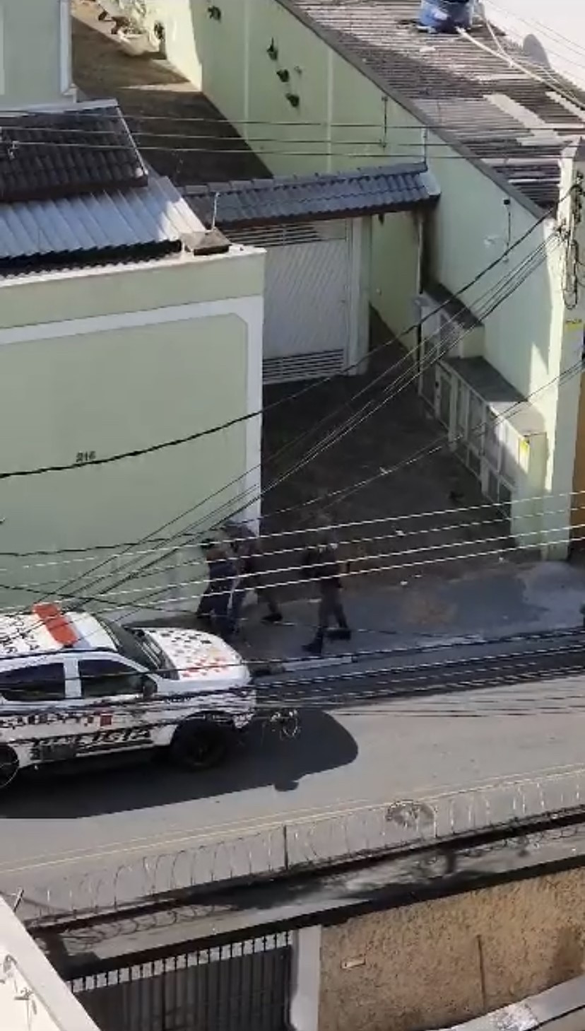 Três homens fugiram da polícia pelo telhado após abandonarem uma motocicleta na rua Francisco Bondanca, na Vila Augusta, nesta tarde.