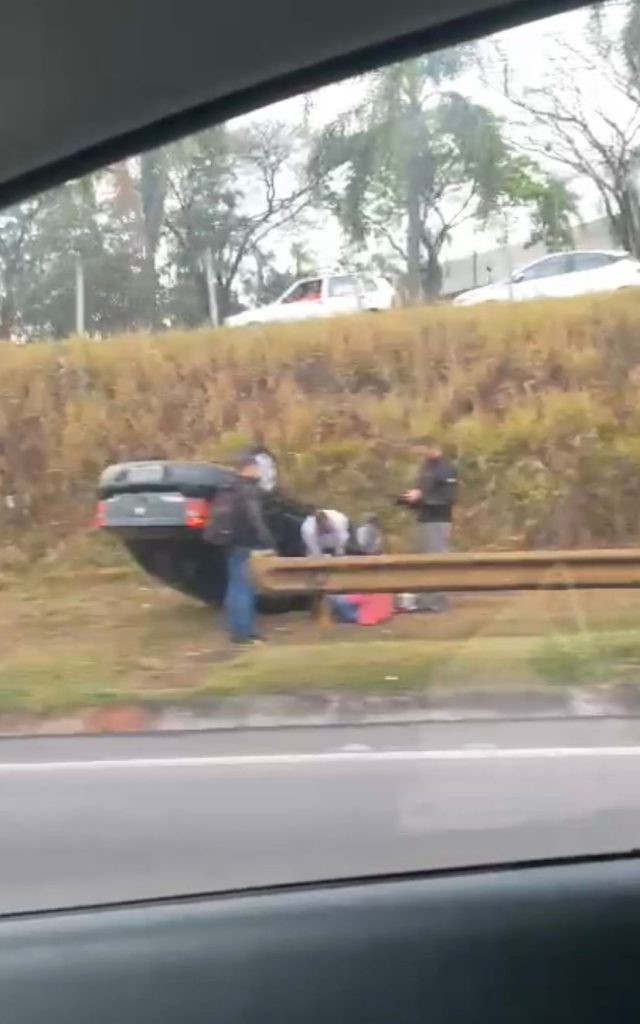 Um acidente na rodovia Presidente Dutra, sentido Rio de Janeiro, deixou um veículo de passeio capotado hoje por volta das 07h. O carro que perdeu o controle saiu da via principal, capotando em um guard rail.