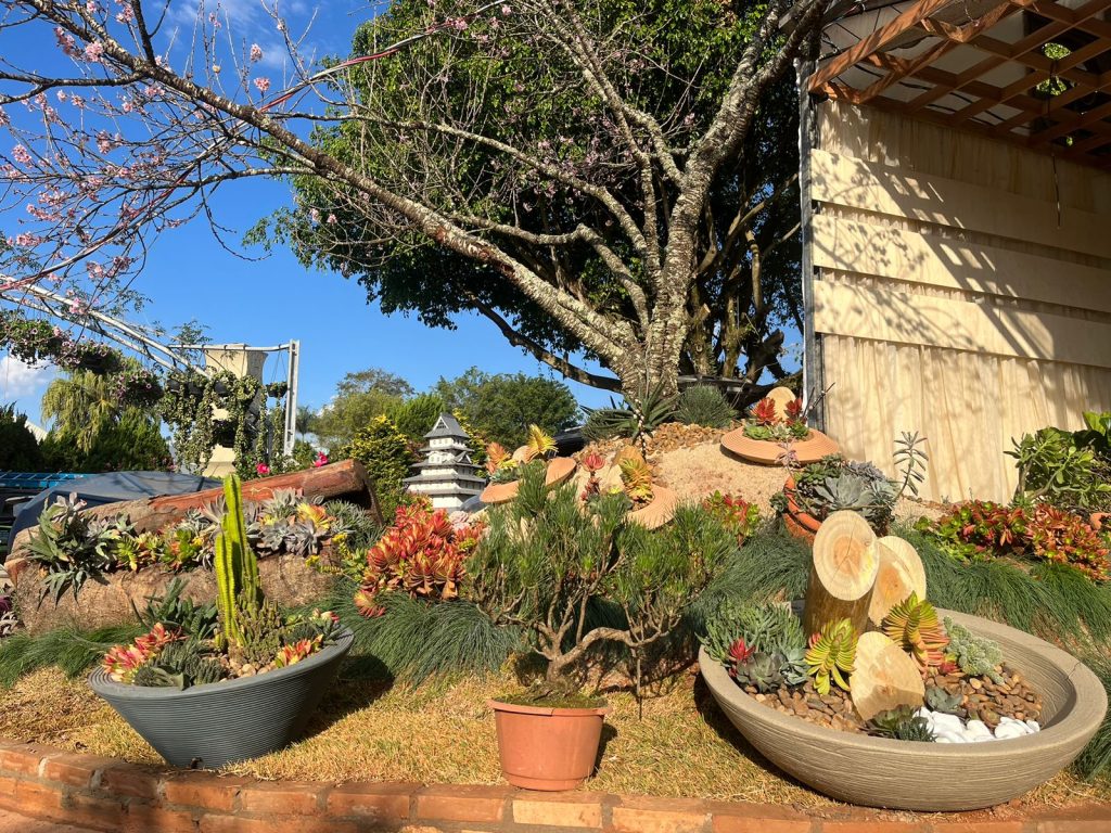 A Expo Aflord comemora sua “Boda de Pérolas – 30 anos de existência” com uma grande novidade para o público: o pavilhão de exposição ganhou um lindo jardim ao ar livre, com 1,5 mil metros quadrados, decorado com mais de 3 mil vasos de flores e plantas ornamentais, fonte de água com carpas e portal japonês (torii).