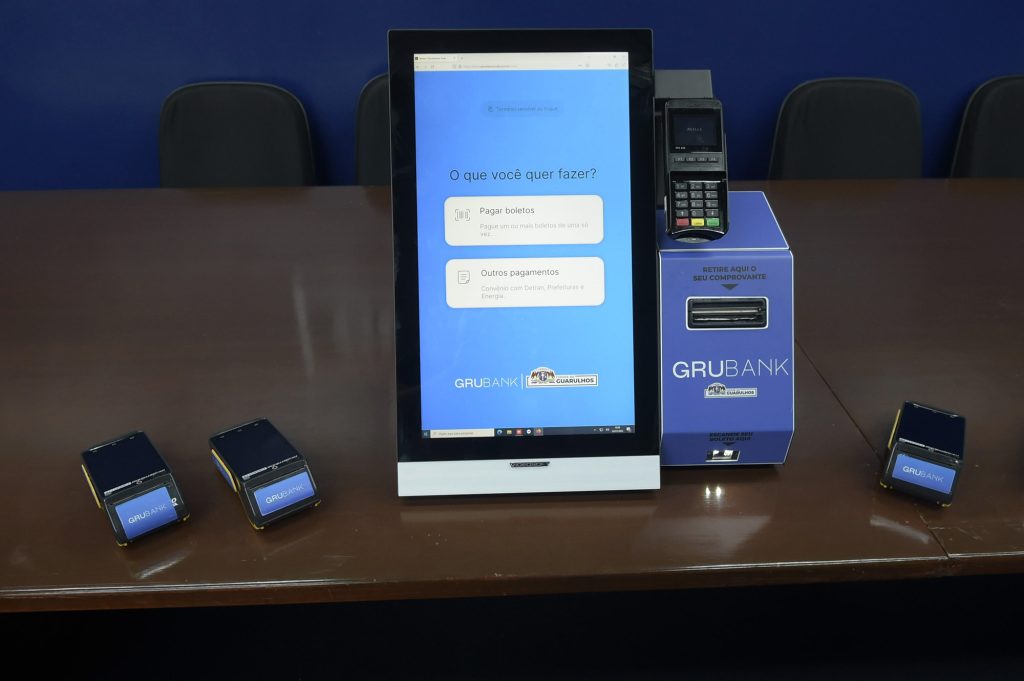 As máquinas de débito e crédito do GRU Bank, o primeiro banco digital municipal do país, já começaram a ser disponibilizadas à população em pontos estratégicos da cidade, de atendimento ao público. Funcionários da Prefeitura de Guarulhos estão nesses locais, em horário comercial, para auxiliar o munícipe na utilização do equipamento.
