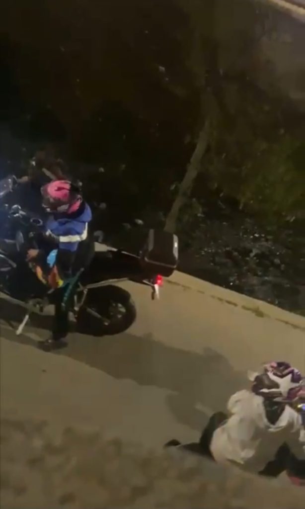 No vídeo gravado é possível ver um dos criminosos armado, agindo com brutalidade ao tirar o capacete do homem e pedindo para que as vítimas entregassem os celulares, enquanto o outro pega o capacete da mulher.