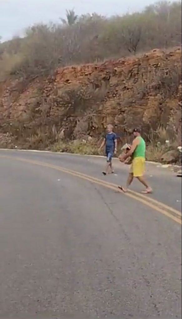 Algumas pessoas em volta ‘’aproveitaram’’ do momento e saquearam a carga enquanto o socorro não chegava ao local para socorrer o caminhoneiro, o que chocou as pessoas na internet.