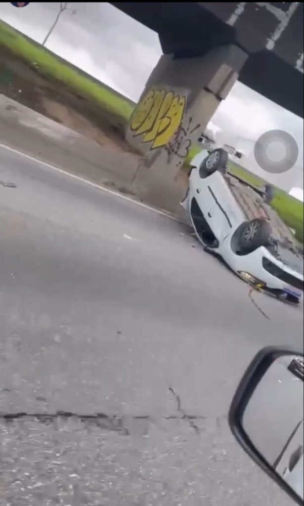 Um veículo capotou do lado esquerdo da rodovia Fernão Dias sentido São Paulo. No vídeo gravado por um dos motoristas é possível visualizar o carro branco com as rodas pra cima enquanto a concessionária Arteris presta o atendimento inicial. Não informações sobre vítimas.