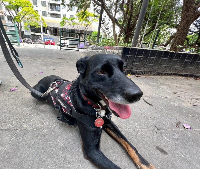 Mani até pode parecer um cão comum. Dócil, ele não esconde que adora um carinho enquanto repousa nos pés do tutor. Mas, apesar da tranquilidade aparente, basta um sinal para que fique em alerta, à espera da próxima missão.