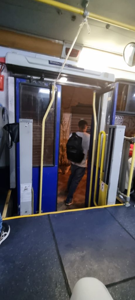 Porta é amarrada com uma corda para não cair e choca passageiros da Linha 473