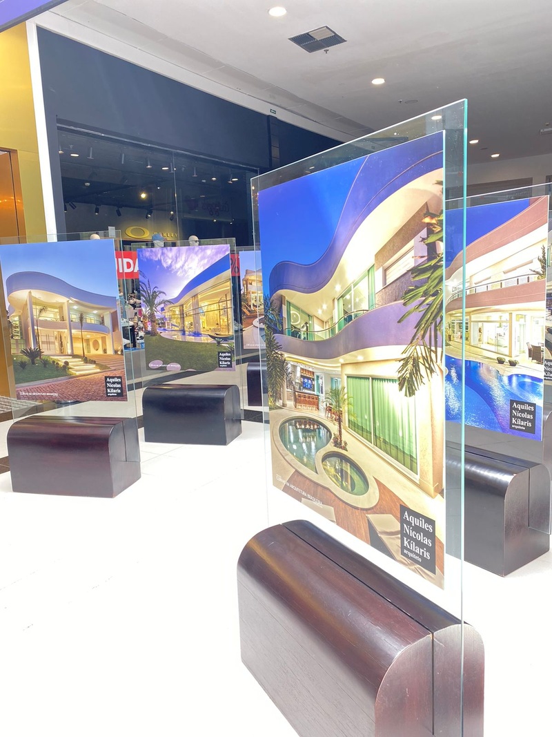 A exposição conta com diversos painéis fotográficos com imagens de projetos arquitetônicos de Kílaris, como concepções de fachadas e áreas de lazer que apresentam formas arredondadas, linhas sinuosas, integração com a natureza, amplitude, ventilação cruzada e iluminação natural integrada com áreas externas e jardins, projetos do arquiteto especialista nessas áreas.