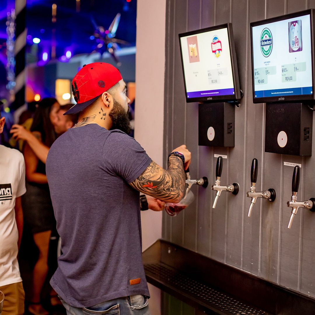 O sistema também permite ao cliente ir até uma das torneiras, instaladas em uma estação de chopp, e se servir com a bebida mais consumida pelos brasileiros. Para ter acesso, todos recebem uma comanda e só efetuam o pagamento na hora da saída.
