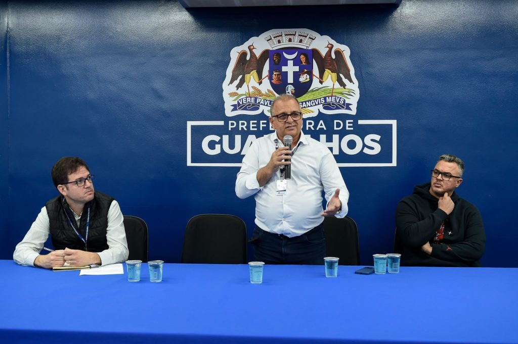 Participaram também da reunião no Paço Municipal o subsecretário de Governo, Carlos Eduardo Barreto, o coordenador do Observatório de Políticas Públicas de Guarulhos, Heber Rocha, e representantes de pastas da Prefeitura.
