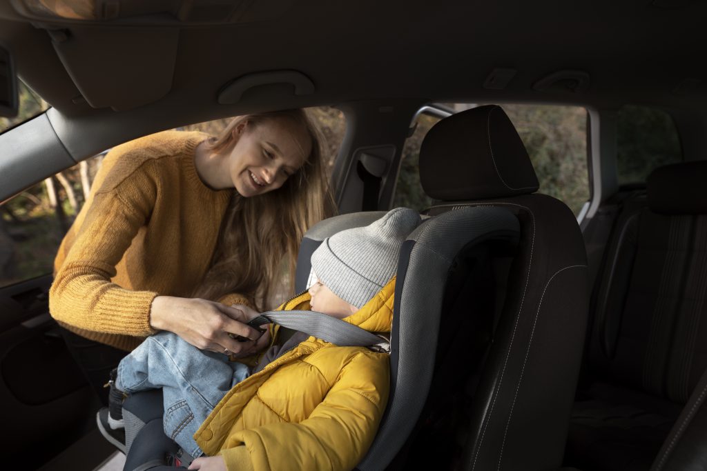 - Bebês até 1 ano de idade: devem ser levadas em cadeira do tipo “bebê conforto”, presa ao cinto de segurança, instalada no banco traseiro de costas para o movimento;