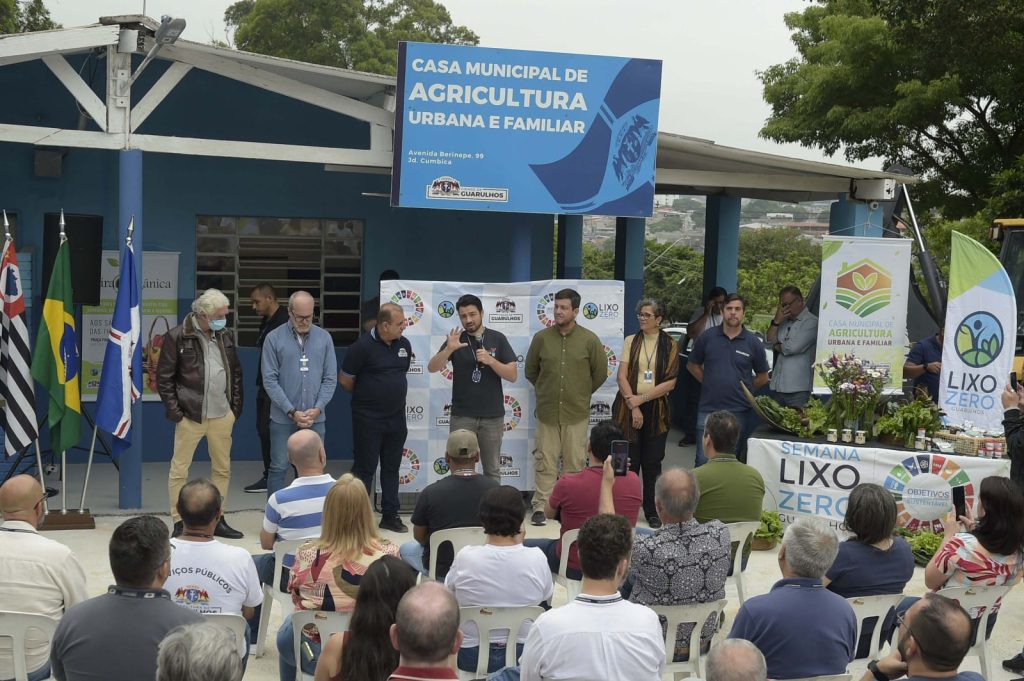 Dando sequência à programação da sétima edição da Semana Lixo Zero Guarulhos, a Prefeitura inaugurou nesta quarta-feira (25) a Casa Municipal de Agricultura Urbana e Familiar (Cmauf) na avenida Berinepe, 99, Jardim Cumbica. O equipamento tem por objetivo promover o desenvolvimento sustentável da agricultura guarulhense, dando destinação ambientalmente adequada aos resíduos orgânicos tratados por métodos de compostagem.