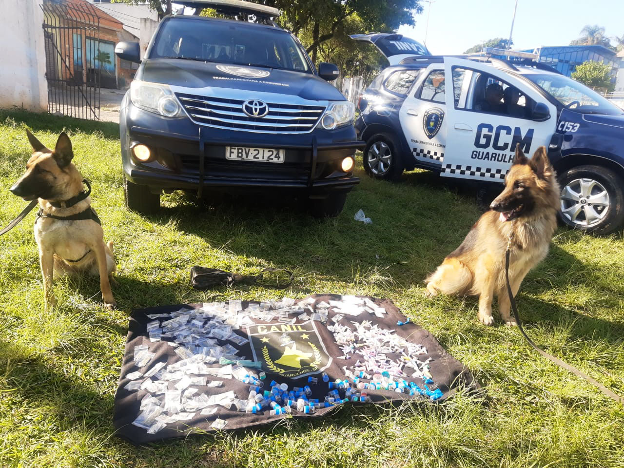 Agentes do Canil da Guarda Civil Municipal (GCM) de Guarulhos apreenderam 1,1 kg de entorpecentes na tarde desta terça-feira (7) quando efetuavam patrulhamento preventivo pela rua Maria Cerri, no Jardim Divinolândia. A equipe deparou com dois homens que empreenderam fuga ao avistarem a viatura, não sendo alcançados e identificados.