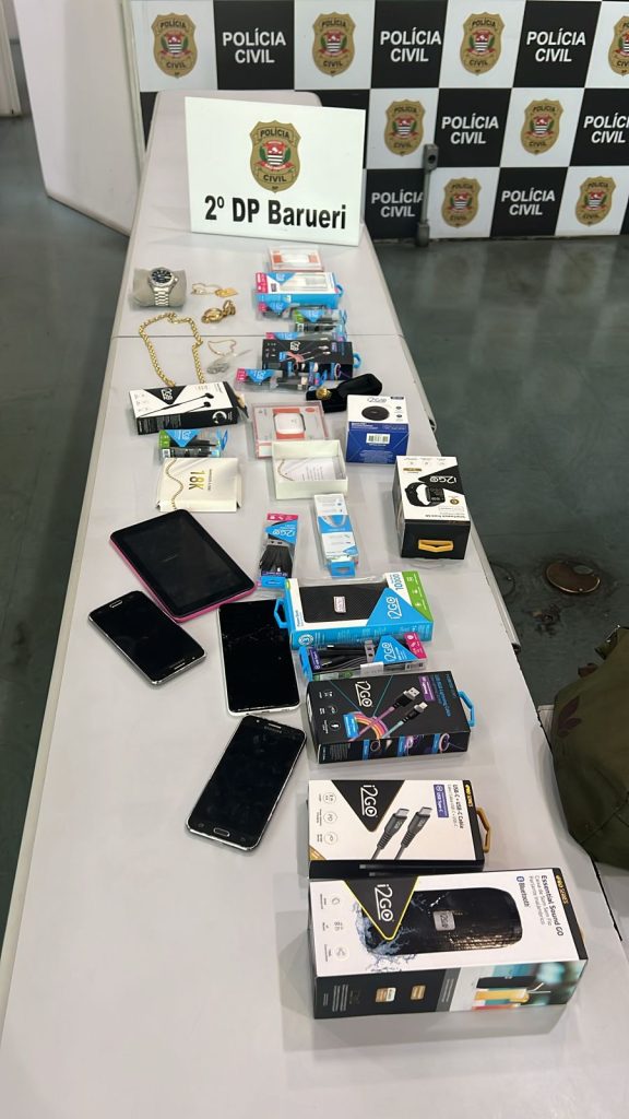 Durante o cumprimento de mandados de busca e prisão, a equipe foi até a casa do suspeito e descobriu que ele estava morando em outro endereço. No segundo local, a equipe encontrou o homem, que foi detido, 25 aparelhos eletrônicos, incluindo 10 cabos USB, relógios, baterias, caixas de som e três celulares, além de 5 anéis e colares, que haviam sido roubados de um comércio em um shopping de Guarulhos.