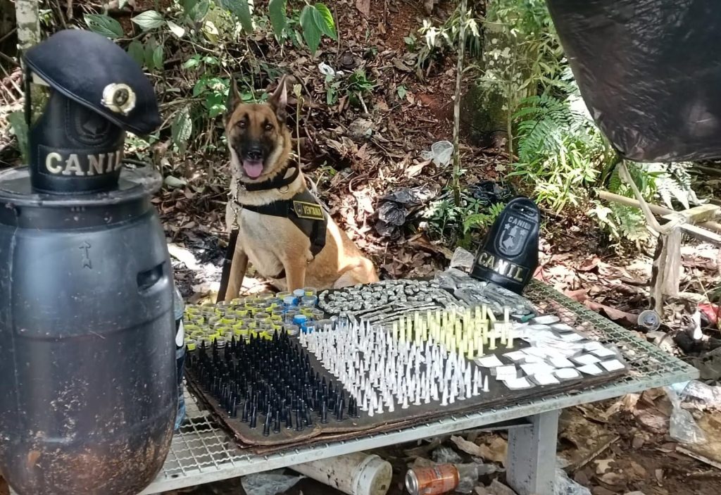 Agentes do Canil da Guarda Civil Municipal (GCM) de Guarulhos apreenderam 1,3 kg de entorpecentes na manhã desta quarta-feira (15) na rua Esperança, no bairro Mato das Cobras, com o auxílio do cão policial Ventania, um pastor-belga farejador. A equipe patrulhava preventivamente a região do Residencial Bambi quando foi informada sobre um possível armazenamento e tráfico de entorpecentes em área de mata.