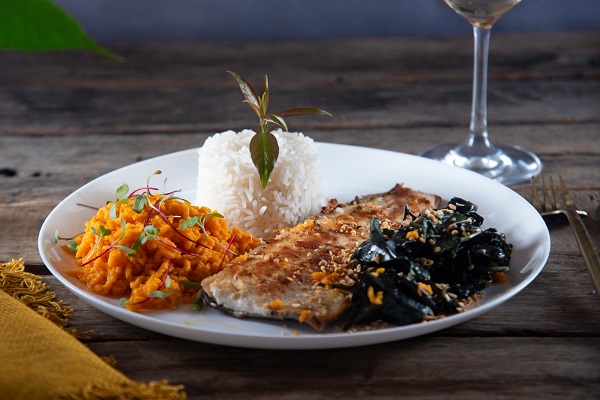 Outro destaque é a Truta Ora Pro Nobis aos Brotos, do Pronobis Restaurante. Acompanhada de arroz branco e purezinho de cenoura, o prato (R$ 76,90) é produzido com folhas de ora-pro-nobis.