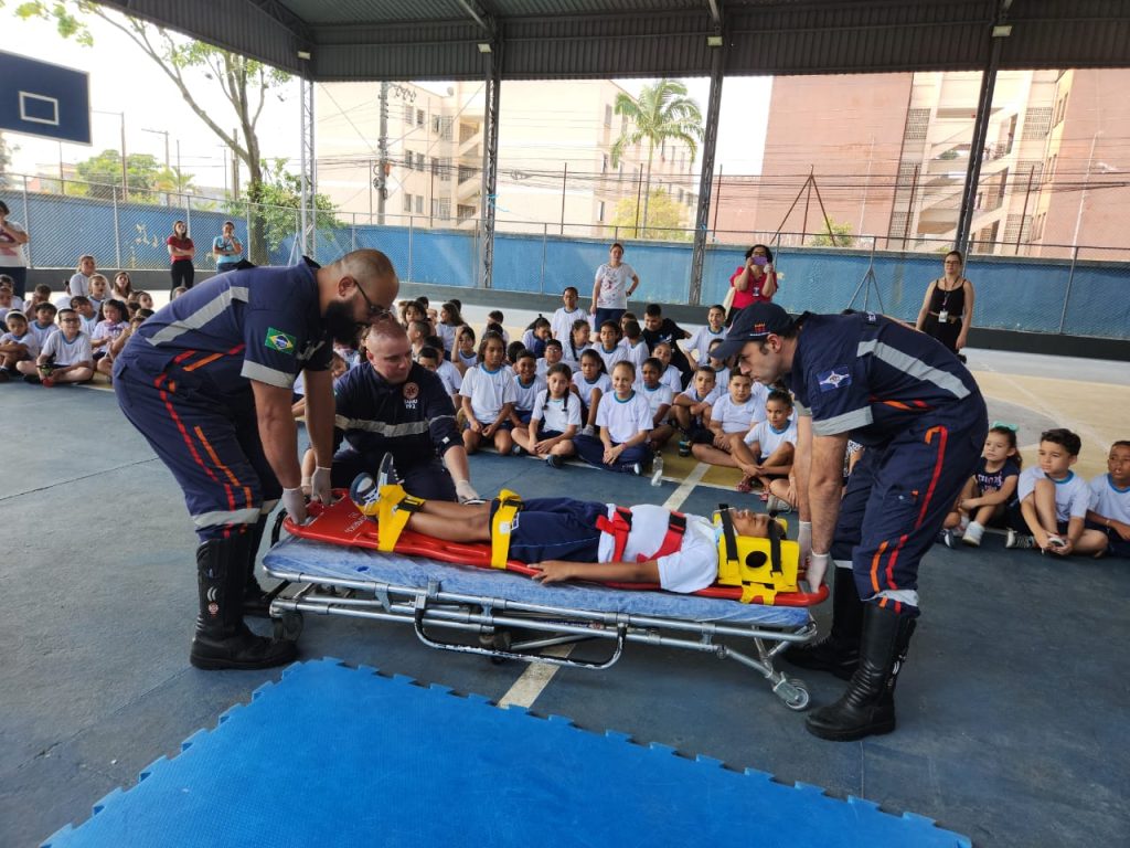 Nesta segunda-feira (4) o Samu (Serviço de Atendimento Móvel de Urgência) de Guarulhos promoveu uma ação de sensibilização e demonstração de primeiros socorros para cerca de 200 alunos da EPG Heraldo Evans, no Gopoúva, divididos em duas turmas. A atividade faz parte da programação especial da Secretaria da Saúde para as comemorações do aniversário da cidade. O objetivo foi integrar o Samu à comunidade.