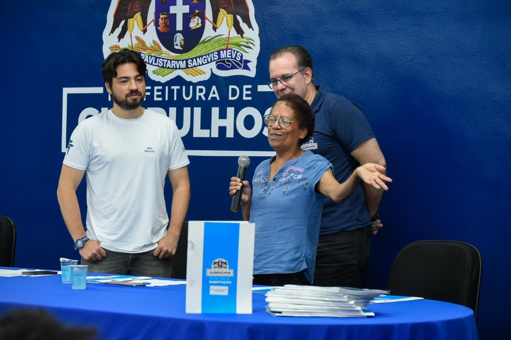 Nesta quinta-feira (7) a Prefeitura de Guarulhos entregou 117 títulos de regularização fundiária e contrato dos imóveis para as famílias do empreendimento Buriti, localizado na região do Jardim São Domingos. A entrega desses documentos faz parte de uma parceria entre a administração municipal, a Companhia de Desenvolvimento Habitacional e Urbano do Estado de São Paulo (CDHU) e a construtora Faleiros, que juntos proporcionam a esses moradores o financiamento com taxas sociais e subsídios para a compra da casa própria.