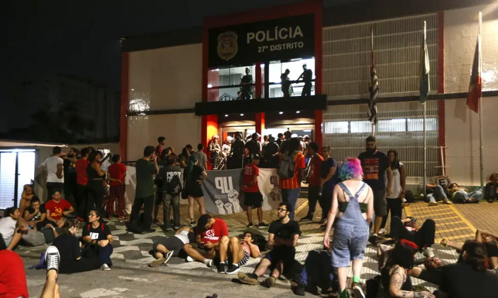 Manifestantes contrários à privatização fizeram uma vigília em frente ao 27ª DP para