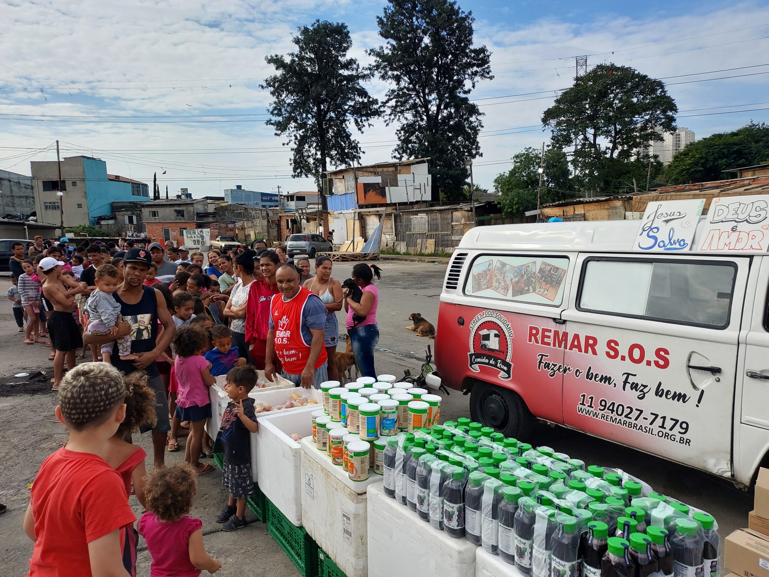 de toneladas de alimentos. O objetivo é proporcionar uma ceia inesquecível para as famílias carentes da comunidade Parque Novo Mundo, uma área de invasão dentro do Terminal de Cargas Fernão Dias, o maior da América