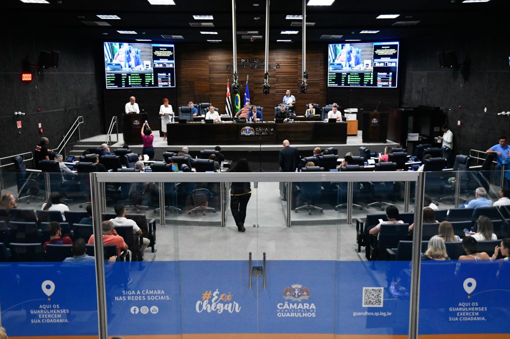 Os vereadores da Câmara de Guarulhos encerraram os trabalhos legislativos de 2023 na tarde desta sexta-feira, 15/12, após a realização de três Sessões Extraordinárias. Seis projetos de lei foram aprovados em dois turnos e seguem para sanção do prefeito Guti (PSD).