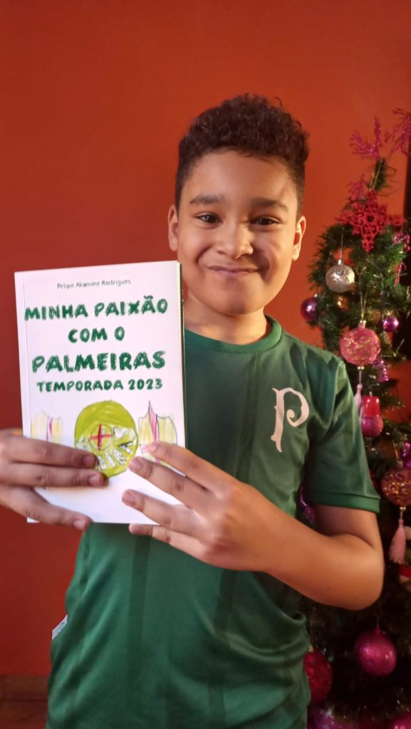 O jovem escritor guarulhense Felipe Akamine Rodrigues, o Lipe, de oito anos, aluno do 3º ano da EPG Profª Zulma Castanheira de Oliveira, no Parque Cecap, acaba de lançar Minha Paixão com o Palmeiras, livro no qual conta o ano futebolístico do Verdão, seu time do coração, e outros acontecimentos do esporte bretão em 2023.