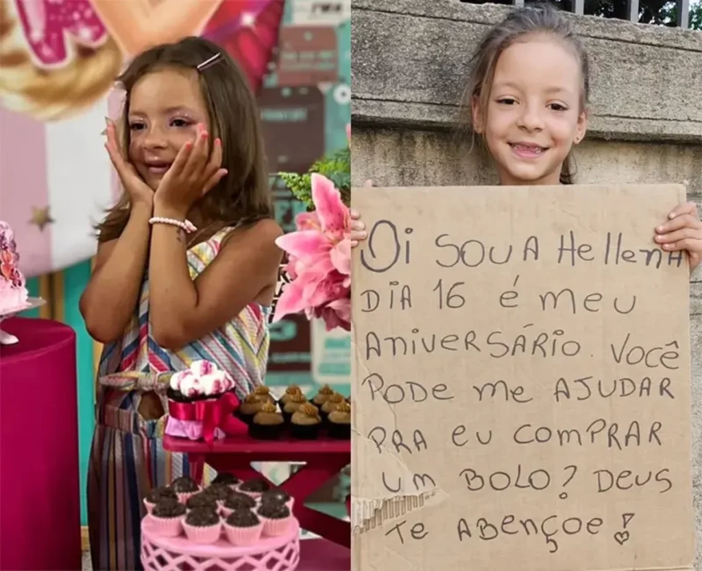 Um sonho realizado. Dois dias após rodar o Brasil com uma foto em que pedia algo simples para a maioria das pessoas, Hellena Barreto ganhou não só um bolo, mas uma festa. A pequena, enfim, conseguiu comemorar os 6 anos com a família e novos amigos.
