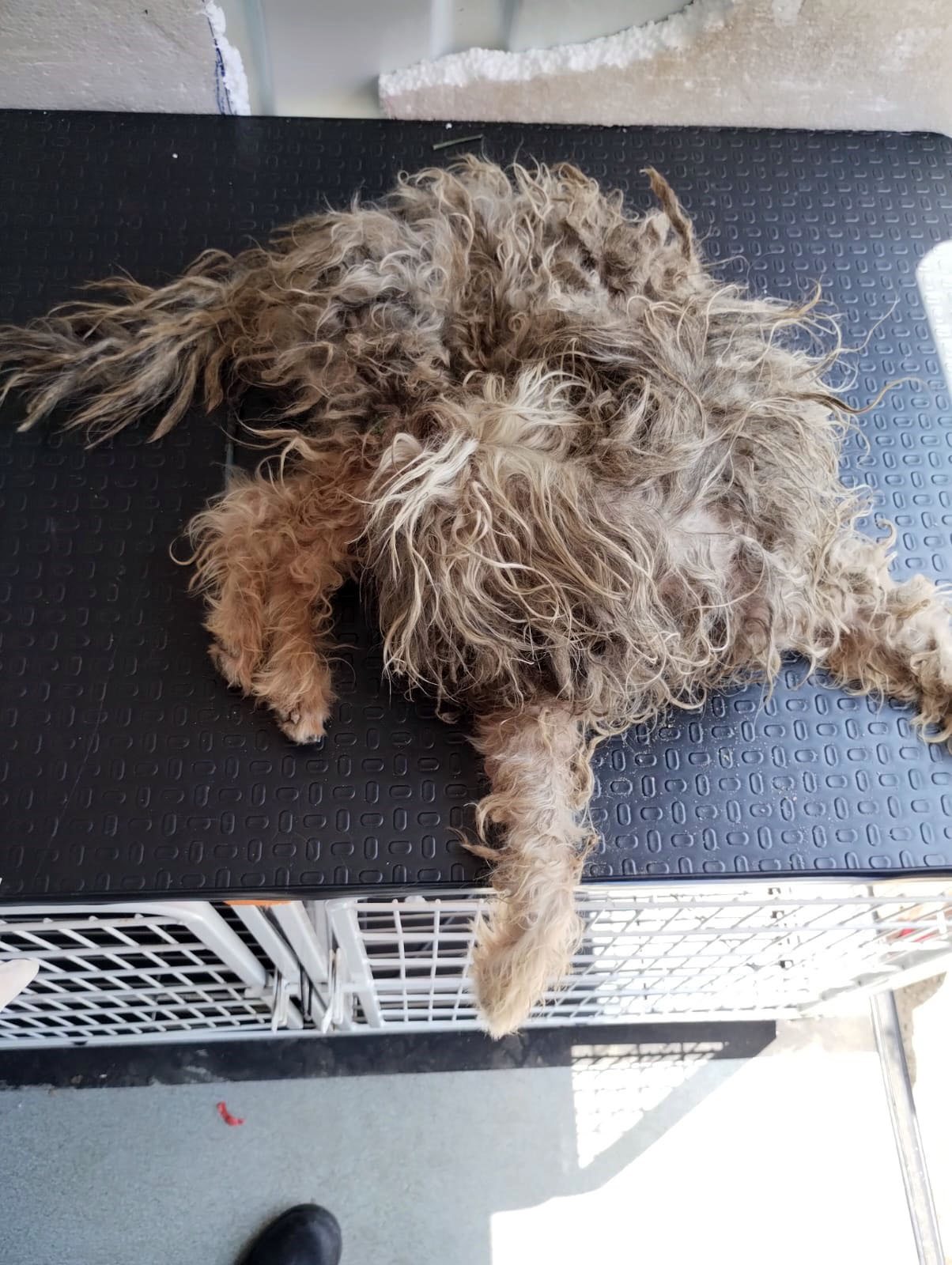 As equipes, junto a médicos veterinários e à ativista de proteção animal Luisa Mell, encontraram o animal sem reação embaixo de uma escada no quintal da residência, com os olhos machucados e com sangue, ferimentos pelo corpo e pelagem completamente suja e embaraçada. Havia outro cachorro na casa, mas de acordo com as testemunhas apenas o cão mais velho era agredido.