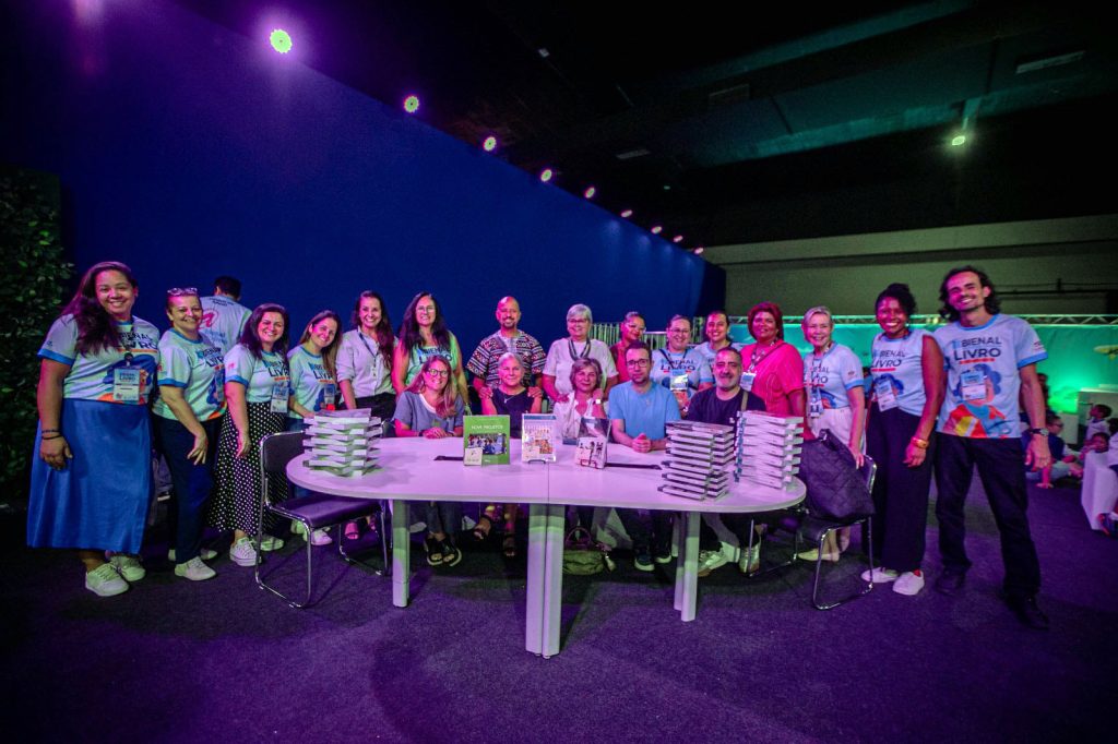 As argentinas Alejandra Dubovik e Alejandra Cippittelli e os espanhóis Isabel Abelleira, Ángeles Abelleira, Vicente Blanco e Salvador Cidrás lançaram obras da área de educação infantil na 3ª Bienal Internacional do Livro de Guarulhos nesta segunda-feira (18) e reuniram interessados na temática no lounge interativo do Espaço Inter.