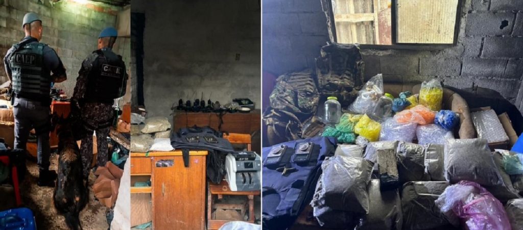 Os policiais realizavam patrulhamento na comunidade Sabiá da Praia quando cão policial Aisha mudou de comportamento e indicou que havia drogas em uma casa aparentemente abandonada. Nas vistorias, a equipe encontrou aproximadamente 20 quilos de maconha, 10 de cocaína e cinco de crack, além dos galões de lança-perfume. O imóvel também guardava rádios comunicadores, colete balístico, munições, máquina para contabilizar dinheiro e balanças de precisão.