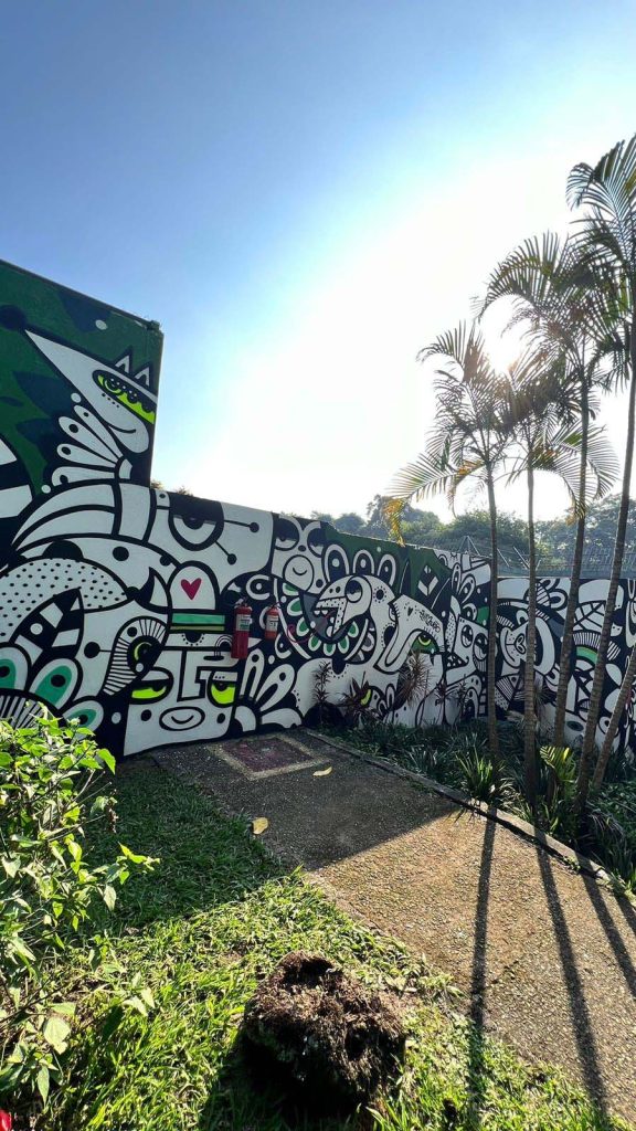 Após pouco mais de quatro anos, o artista plástico guarulhense Elvis Mourão volta ao Zoológico de Guarulhos, no Jardim Rosa de França, para renovar o grafite feito por ele em 2020 no muro lateral do recinto dos leões Madiba e Kalipha. Quem passa pelo local já pode admirar as novas formas e cores que tomaram conta da paisagem.