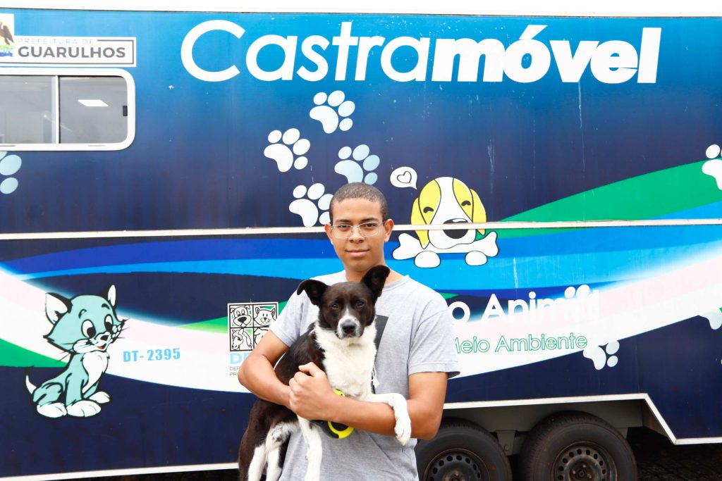 Dezenas de tutores com seus cães compareceram nesta quinta-feira (18) ao trailer Castramóvel, serviço de castração gratuita oferecido pela Prefeitura de Guarulhos que permanece estacionado até o dia 2 de maio na Base Aérea de São Paulo, em Cumbica. A ação é parte da campanha de esterilização de abril, que oferece 1,3 mil vagas no total, incluindo um segundo Castramóvel atendendo no Clube do Parque Cecap e o centro cirúrgico fixo, em Bonsucesso.