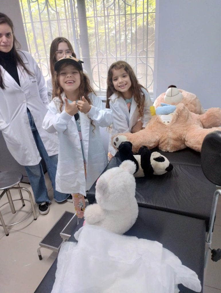 Crianças que estiverem na UBS Dona Luiza neste sábado (20) puderam participar das atividades lúdicas promovidas pelo Hospital do Ursinho, iniciativa da Federação Internacional das Associações dos Estudantes de Medicina. Utilizando materiais lúdicos e muita brincadeira, foram realizadas simulações de atendimento médico, de forma a reduzir o medo e a ansiedade dos pequenos que esperam por atendimento ou estão em tratamento de saúde.