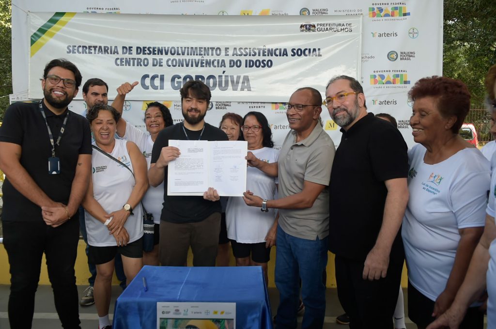 Cerca de cem idosos que frequentam o CCI Gopoúva já participam das aulas de futebol adaptado e, nesta sexta-feira, a parceria foi firmada em uma celebração que reuniu, além dos idosos, o prefeito Guti, o secretário de Desenvolvimento e Assistência Social, Fábio Cavalcante, e o presidente executivo da Walking Football, Ricardo Leme.