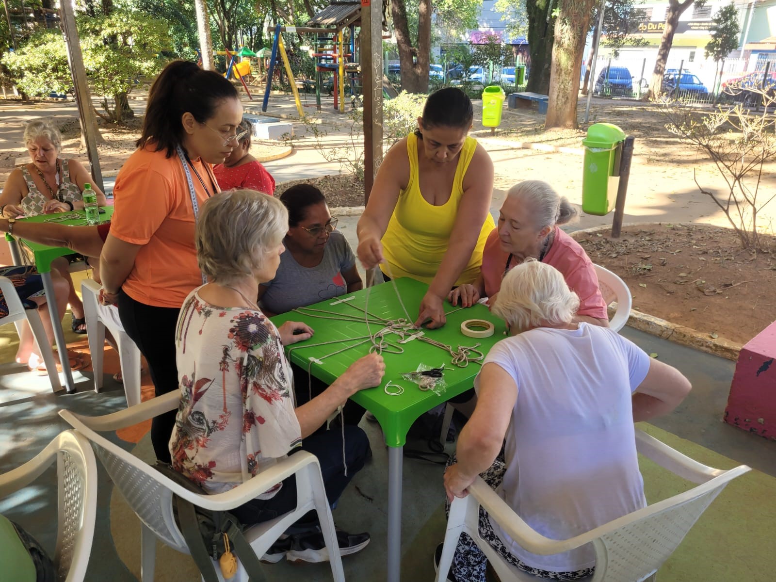 Com o objetivo de produzir intervenções no parque, decorando-o com as cores dos meses estabelecida pela OMS e pelo programa Movimenta Saúde, as oficinas propõem a utilização de diferentes materiais e trocas de saberes entre os integrantes do grupo.