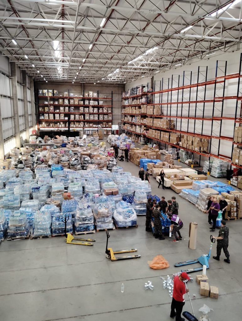 Nesta semana, voluntários do Tiro de Guerra de Guarulhos estão atuando diariamente na separação e organização das doações. As roupas, por exemplo, são separadas entre as para adultos e infantis, entre masculinas e femininas. Na quinta-feira, muitas doações continuavam chegando e nesta sexta-feira haverá uma força-tarefa para deixar todos os pallets em condições de serem embarcados nas carretas.