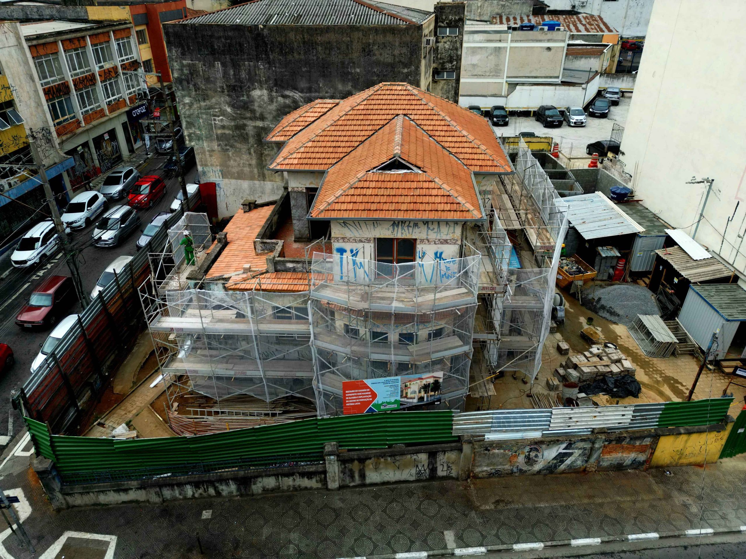 Em relação ao andamento da obra, cujo projeto foi aprovado pelo Conselho do Patrimônio Histórico, é possível destacar o avanço de serviços como a alvenaria da edícula, o restauro do porão, reforços estruturais com barrotes, restauro das esquadrias e o início do restauro da argamassa da fachada, detalhes reconstruídos minuciosamente para preservar a construção original.