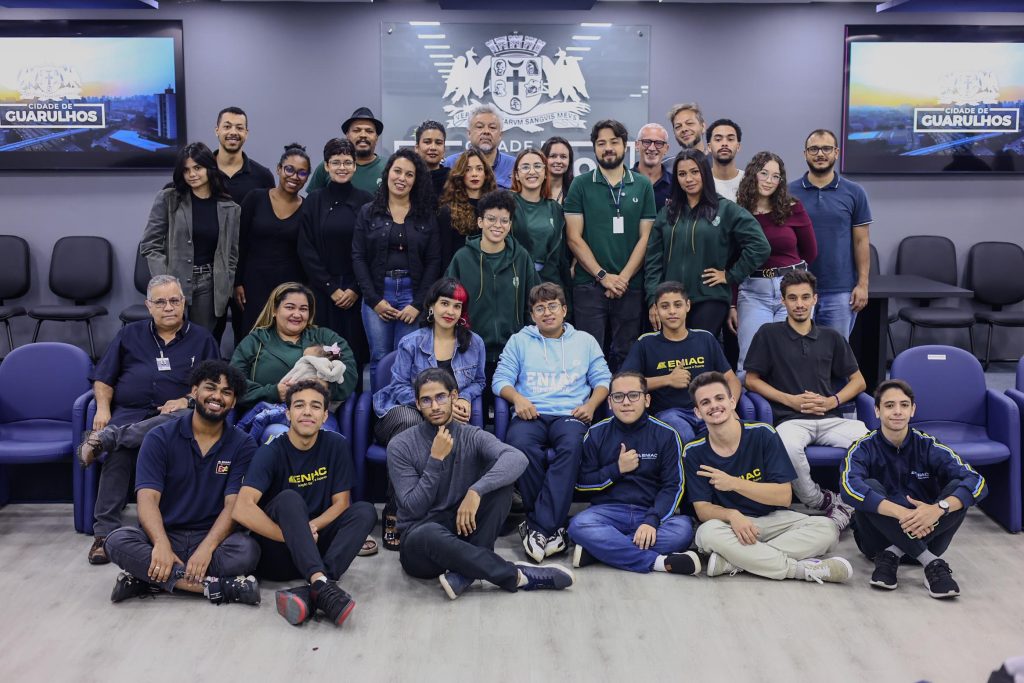 Em reunião no Paço Municipal de Guarulhos realizada na manhã desta quarta-feira (4), jovens selecionados no programa Clima Ação Jovem apresentaram o andamento dos projetos executados com o apoio financeiro do Fundo de Ação Climática Jovem, iniciativa global promovida em parceria com a Bloomberg Philantropies, o Bloomberg Center for Public Innovation e Cidades e Governos Locais Unidos.