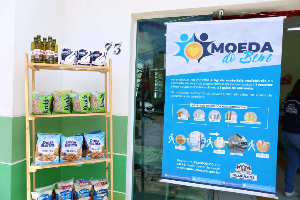 A quarta unidade do programa Moeda do Bem foi inaugurada nesta segunda-feira (30) no Jardim Cumbica. Agora a população poderá entregar materiais recicláveis no Ecoponto Jardim Cumbica, na avenida Berinepe, 99, e retirar os alimentos não perecíveis no Cras Amigo Jovem, na rua São Sebastião, 73, Cidade Industrial Satélite. Cada 5 quilos de recicláveis dão direito a um quilo de alimento.